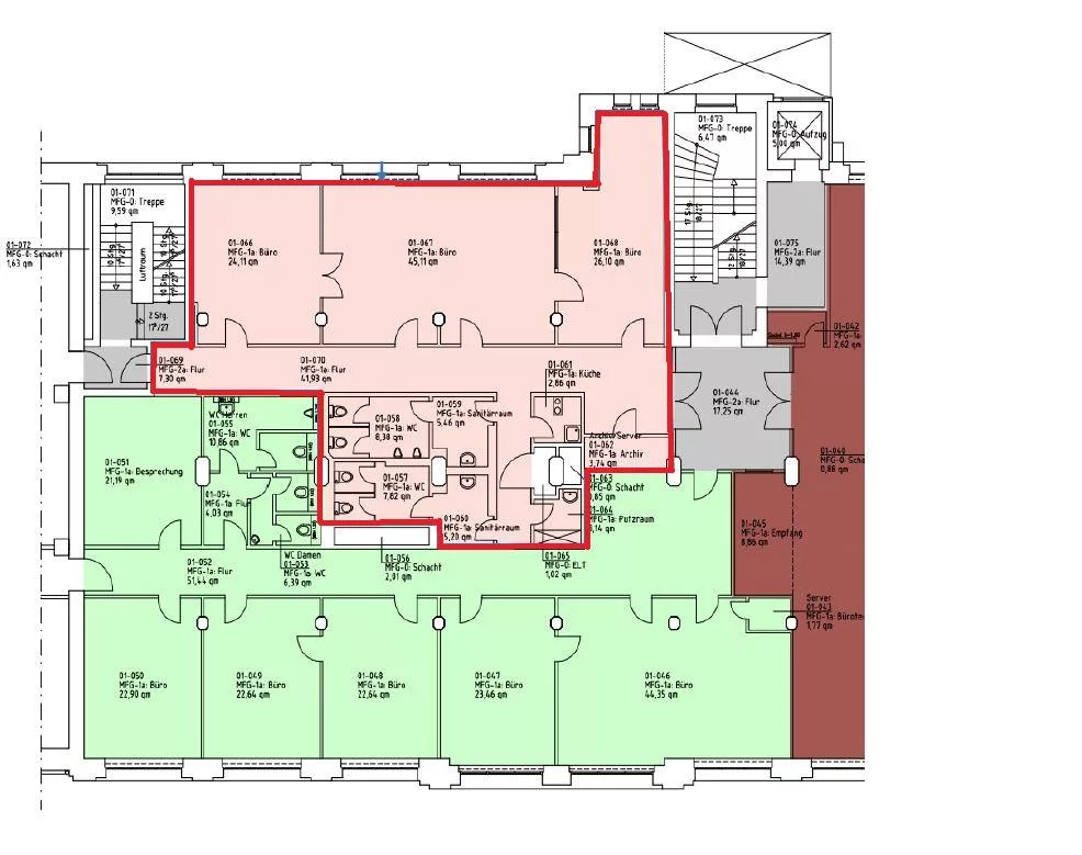 durch Aufteilungsraster der Büroflächen äußerst flexible Nutzbarkeit