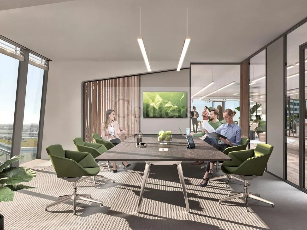 Das 20-geschossige und 76 m hohe Bürogebäude vom Architekten Helmut Jahn ergänzt mit seiner transparenten Glasfassade und dem spektakulären Skydome das Bild des MedienHafens positiv. Ein stützenfreies Statikkonzept ermöglicht eine flexible Raumgestaltung. Die Kühlung erfolgt über Betonkernaktivierung und Unterflurkonvektoren. Den Nutzern steht ein Concierge Service zur Verfügung.