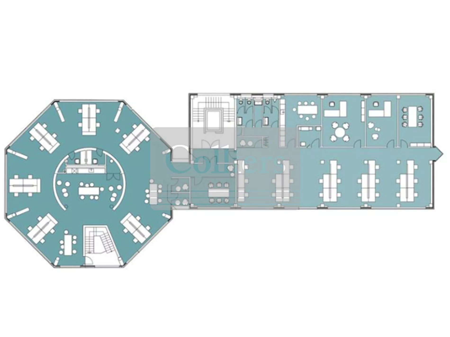 • Effiziente Aufteilung in Einzel-, Kombi- und Großraumbüros möglich