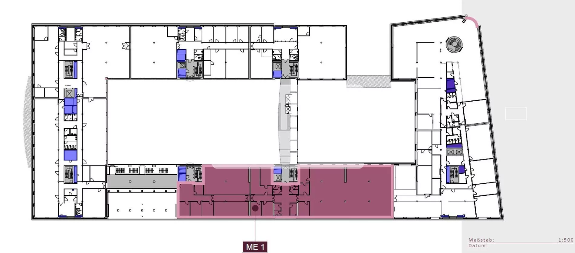 • Aufgrund des flexiblen Grundrisses können verschiedene Arbeitsplatzkonzepte von Einzelverzimmerung bis hin zu Open-Space-Flächen realisiert werden. Zahlreiche Fenster sorgen für ausreichend Tageslicht und eine angenehme Arbeitsatmosphäre.