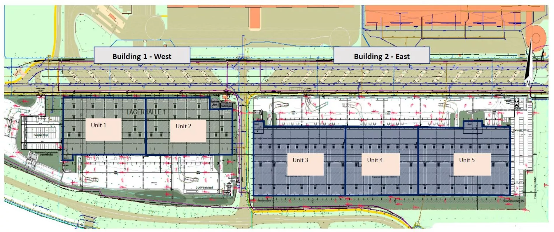 In Schkeuditz, ca. 13 km westlich von Leipzig entfernt, stehen ab Q2/2025 hochwertige Lager- und Logistikflächen zur Verfügung. Die Lage besticht durch seine sehr gute Verkehrsanbindung zur BAB9, BAB14 und der Bundesstraße B6 sowie dem Flughafen Leipzig/Halle. Es werden zwei Hallen nach neuestem Standard errichtet und verfügen neben Rampen, einer Luft-Wärme-Pumpe und LED-Beleuchtung, zusätzlich über individuelle Büro- und Sozialflächen. Auf dem Grundstück stehen ausreichend PKW- und LKW-Stellplätze zur Verfügung. Die Fertigstellung von Gebäude West ist zu Q2/2025 geplant , Gebäude Ost zu Q4/2025.