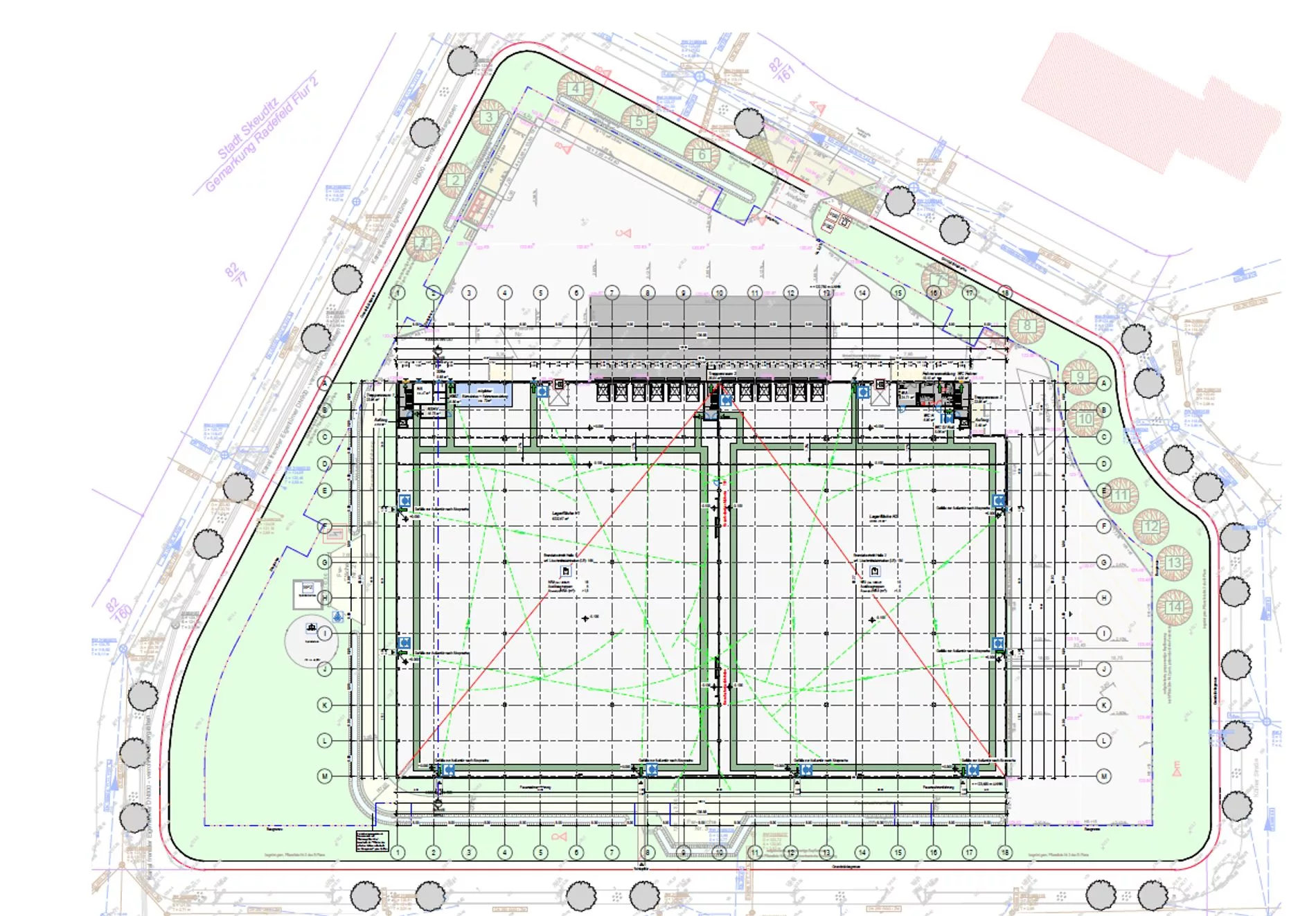 Im Gewerbegebiet von Schkeuditz steht eine moderne Logistik- und Industrieimmobilie mit rund 11.680 m² Hallenfläche zur sofortigen Nutzung bereit. Der fertiggestellte Neubau erfüllt die aktuellen Anforderungen an leistungsfähige Logistikbauten und überzeugt mit hochwertiger Ausstattung – darunter eine integrierte Photovoltaikanlage und eine Hallenhöhe von 10,30 m. Die verkehrsgünstige Lage unweit des Flughafens Leipzig/Halle macht den Standort besonders attraktiv für logistiknahe und industrielle Anwendungen mit überregionaler Ausrichtung.