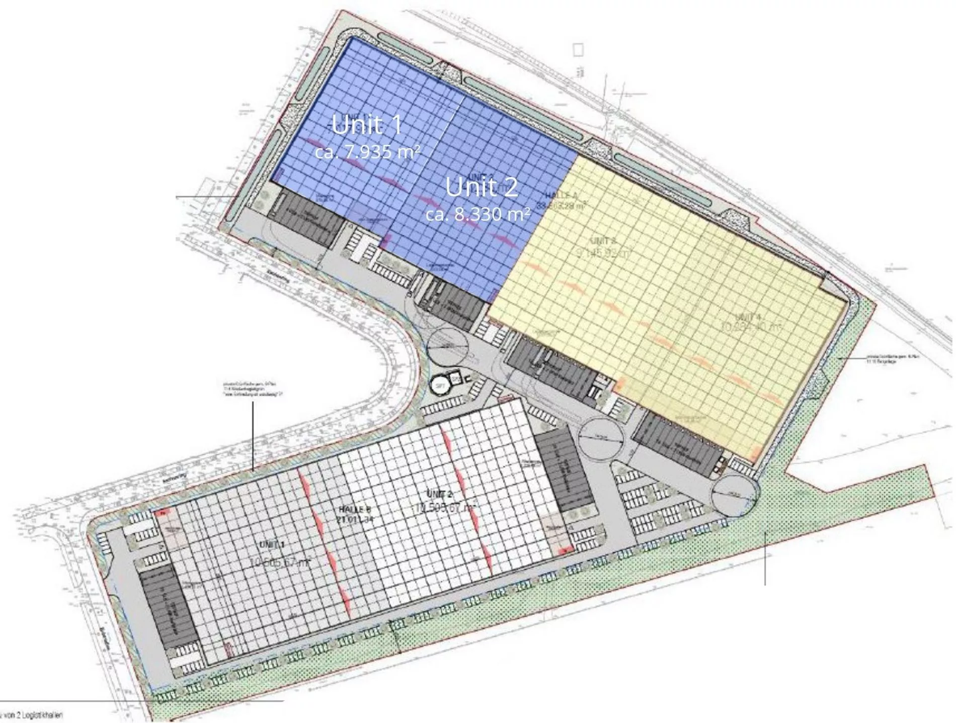 In einer neu errichteten Logistikhalle stehen derzeit zwei Units zur sofortigen Anmietung bereit. Unit 1 umfasst ca. 7.935 m² und Unit 2 ca. 8.330 m². Jede Einheit verfügt über eine moderne Andienung mit zwei ebenerdigen Toren sowie sieben LKW-Rampen. Die flexibel nutzbaren Lagerflächen eignen sich ideal für Logistik-, Distributions- oder Handelsunternehmen und sind ab einem Mietpreis von 5,90 € pro Quadratmeter verfügbar. Die Logistikimmobilie liegt strategisch günstig in unmittelbarer Nähe zur A9, A14 und B6, was eine schnelle Anbindung an das überregionale Autobahnnetz bietet. Der Flughafen Leipzig/Halle ist nur eine kurze Fahrt entfernt, was internationale Transporte erleichtert.